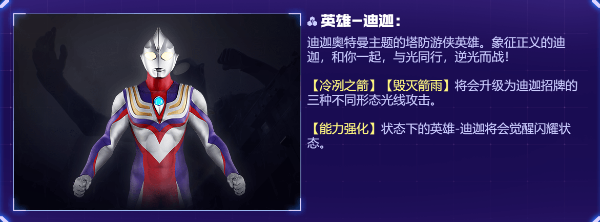 英雄游侠—迪迦这款皮肤在装备上后,我们的游侠在攻击时会发生一定的变化。首先就是攻击速率方面,攻击会变为凝聚光波进行范围攻击,而不是与原皮肤间断性射箭进行攻击。虽然速率变慢了,但是伤害也变高了。