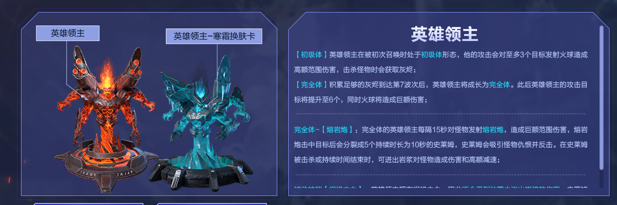 英雄领主与英雄领主的皮肤—寒霜,两者的技能形式和攻击方式一致。
