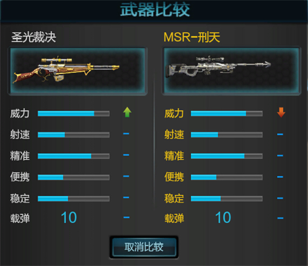 首先,圣光裁决是一把轻狙,我们看一下著名的”刑天”和“圣光裁决”的对比图吧: