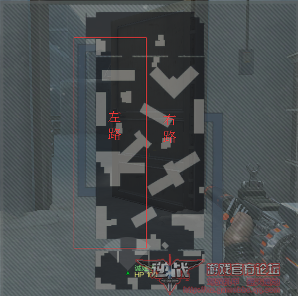 如图所示,红框位置为左路,没有标记的为右路,特别需要注意的是地图上有两条小道,入口均在双方出身点的右侧,但是可以火线跳入对方的通道。