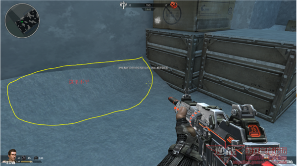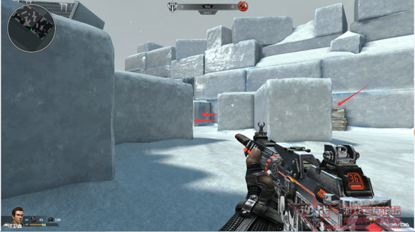 其一:箱子的左侧是一面雪墙,在雪墙下有一小堆积雪,当角色移动到这里的时候会有个上移的情况,在影响枪线的同时也增大了被打击面。