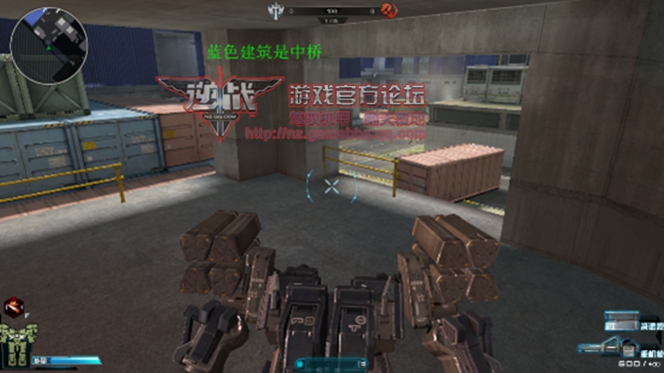 图为守卫者家左侧通道的末端:半开放平台。外面就是距离守卫者家最近的主战场:装饰桥。之所以管它叫装饰桥,是因为这座桥是飞不上去的,只能在桥下作战……。桥下除了几根柱子以及若干集装箱外,没有其他掩体,鹰眼在图中所示这个平台上,将有不错的视野和相对安全的输出环境。当突击者压制到守卫者家附近时,这里将是扭转局势的关键。