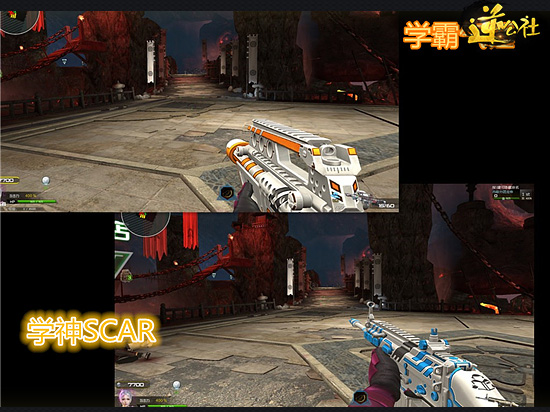 两把枪都以银白色为主,其中以橙色和蓝色区分不同武器昵称。尾托印着学霸的锐眼、学神的耐心。