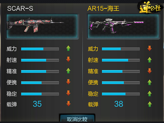 通过比较我们可以看出海王伤害还是不够高,SCAR-S在威力和精准伤害仍旧领先,这也是SCAR系列枪械一直以来不变的特点。不同的枪械特点不同,使用的人群也会有所不同。