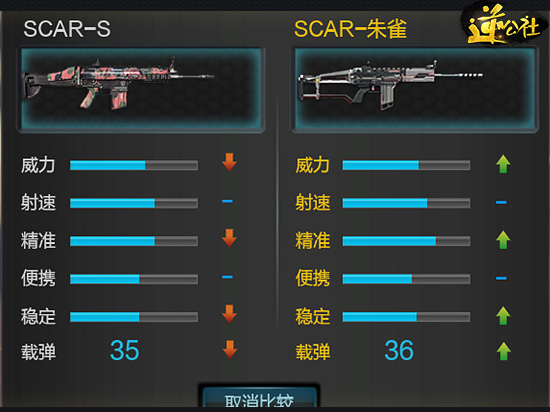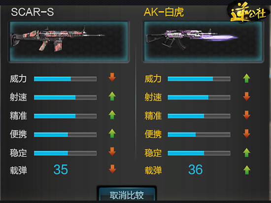 通过上面的属性对比我们可以看出SCAR-S在威力和稳定上面不如白虎,但在射速与精准上面要比白虎优秀。白虎是当下主流步枪之一,SCAR-S仍旧有与他对比的资本。