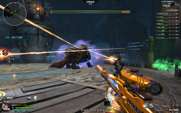 出场以后一开始的招式比较简单,冲到一个玩家旁边然后是普通攻击,注意躲避就可以了。然后是马车技能,这个技能需要看boss伸手指向的方向指向那里马车就去那里,这个时候boss是不动的,可以造成高的输出。
