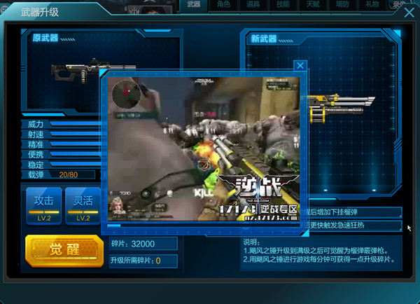 首先需要把飓风之锤攻击、灵活、载弹、经验升级满后才能觉醒升级为逆战榴弹霰弹枪。飓风之锤的每一级的升级都需要不同数量的碎片(如攻击升级一次需要1200碎片),不过升级碎片是通过游戏使用飓风之锤的时间长度来定,一分钟可获得一碎片。所以飓风之锤觉醒升级成逆战榴弹霰弹枪这把神器,根本就不需要花钱!只需要你通过对应的游戏时长来获得碎片!
